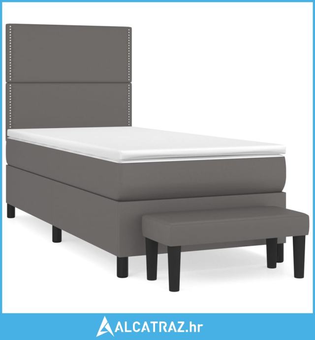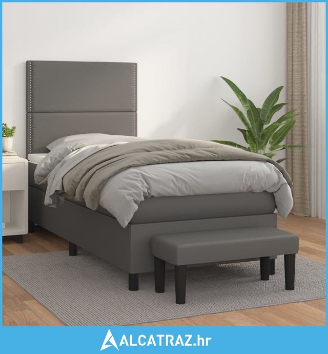 Krevet s oprugama i madracem sivi 90 x 200 cm od umjetne kože - NOVO