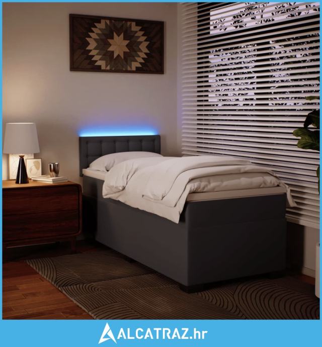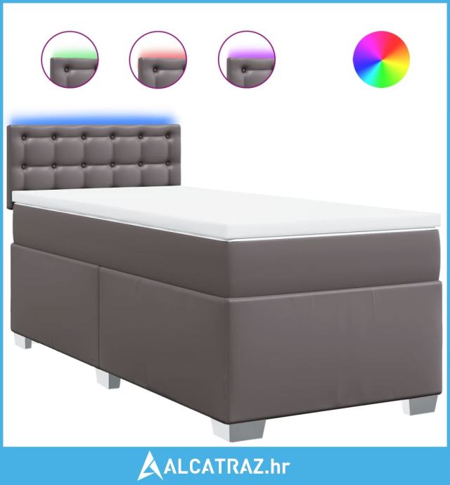Krevet s oprugama i madracem sivi 90 x 200 cm od umjetne kože - NOVO
