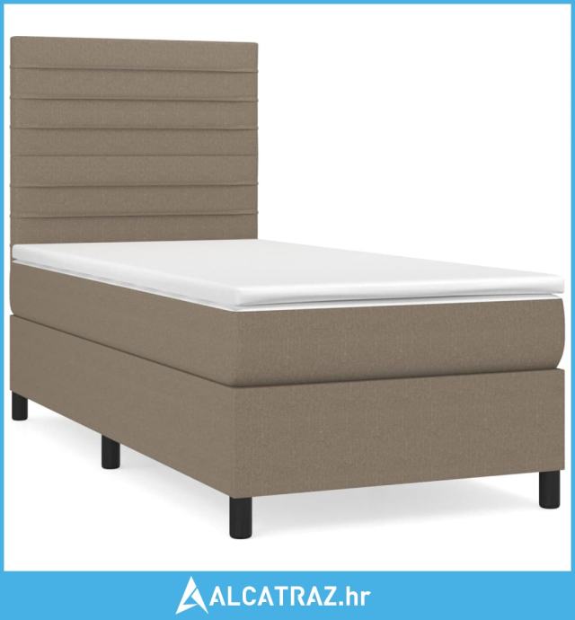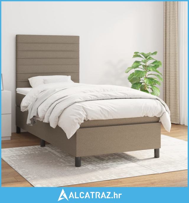 Krevet s oprugama i madracem smeđesivi 100 x 200 cm od tkanine - NOVO