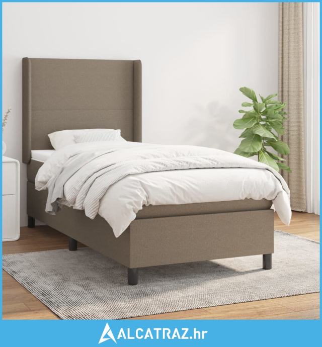 Krevet s oprugama i madracem smeđesivi 100 x 200 cm od tkanine - NOVO