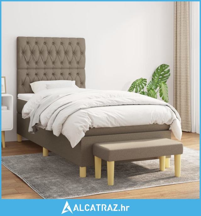 Krevet s oprugama i madracem smeđesivi 100 x 200 cm od tkanine - NOVO