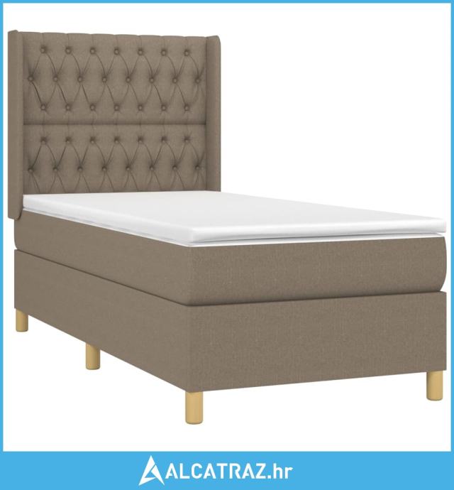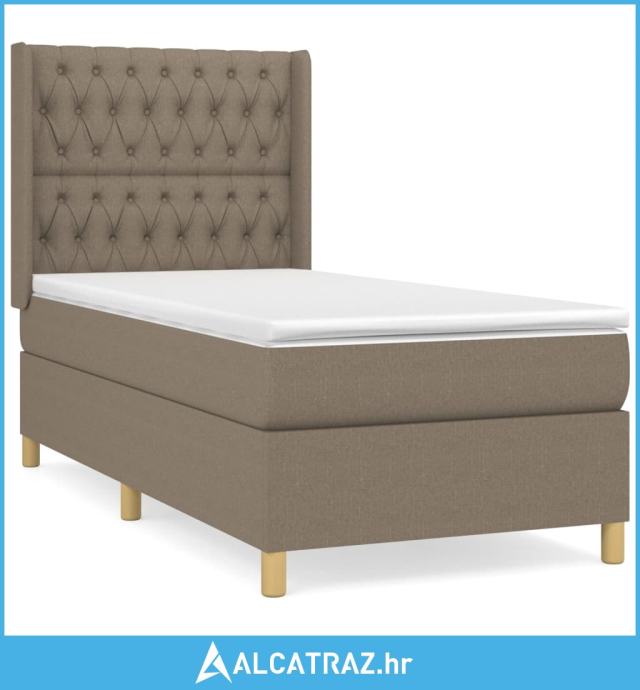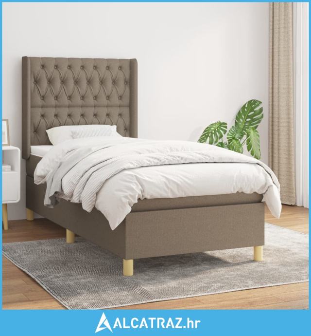 Krevet s oprugama i madracem smeđesivi 100 x 200 cm od tkanine - NOVO