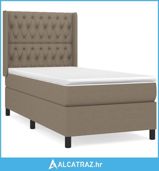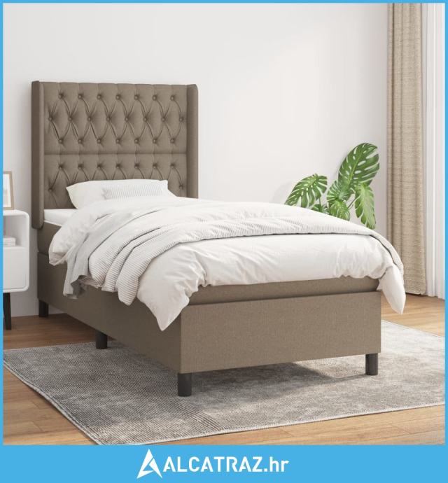 Krevet s oprugama i madracem smeđesivi 100 x 200 cm od tkanine - NOVO