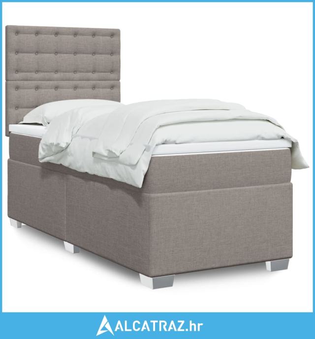 Krevet s oprugama i madracem smeđesivi 100 x 200 cm od tkanine - NOVO