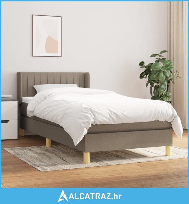Krevet s oprugama i madracem smeđesivi 100 x 200 cm od tkanine - NOVO