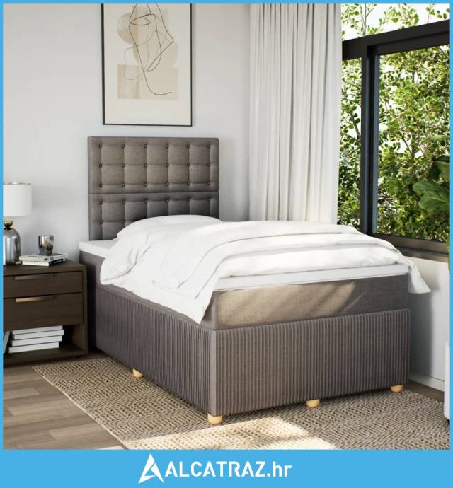 Krevet s oprugama i madracem smeđesivi 120 x 190 cm od tkanine - NOVO