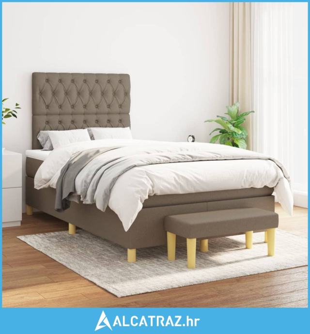 Krevet s oprugama i madracem smeđesivi 120 x 200 cm od tkanine - NOVO