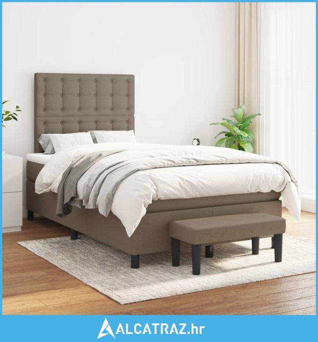 Krevet s oprugama i madracem smeđesivi 120 x 200 cm od tkanine - NOVO