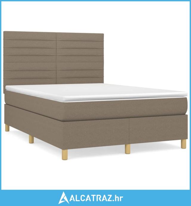 Krevet s oprugama i madracem smeđesivi 140 x 190 cm od tkanine - NOVO