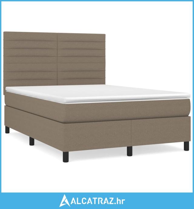 Krevet s oprugama i madracem smeđesivi 140 x 190 cm od tkanine - NOVO
