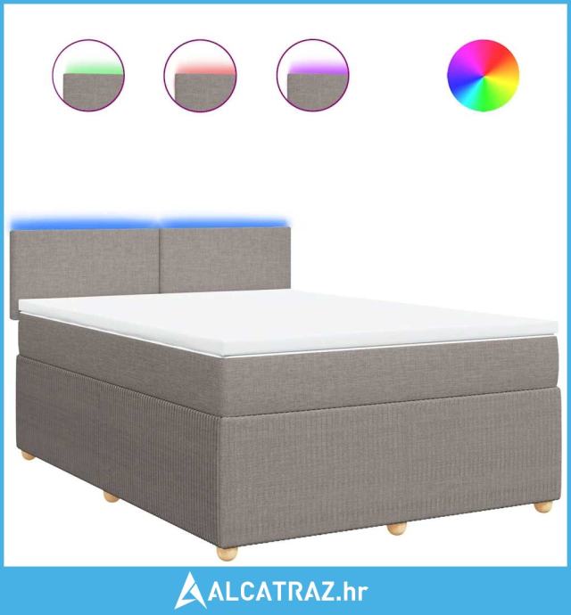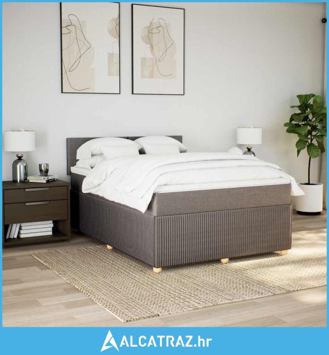 Krevet s oprugama i madracem smeđesivi 140 x 190 cm od tkanine - NOVO