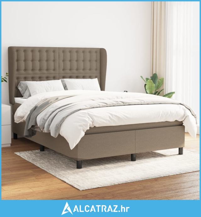 Krevet s oprugama i madracem smeđesivi 140x200 cm tkanina - NOVO