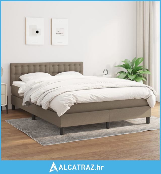 Krevet s oprugama i madracem smeđesivi 140x200 cm tkanina - NOVO
