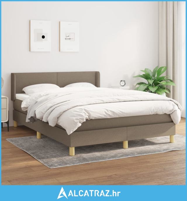 Krevet s oprugama i madracem smeđesivi 140x200 cm tkanina - NOVO