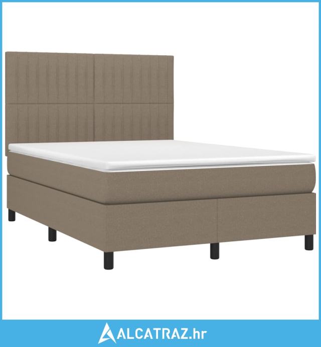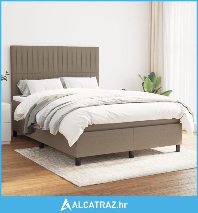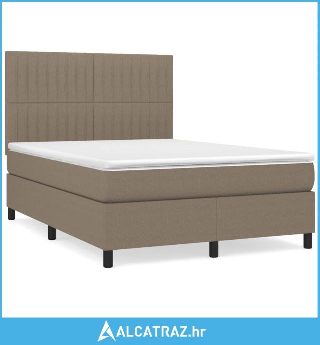 Krevet s oprugama i madracem smeđesivi 140x200 cm tkanina - NOVO