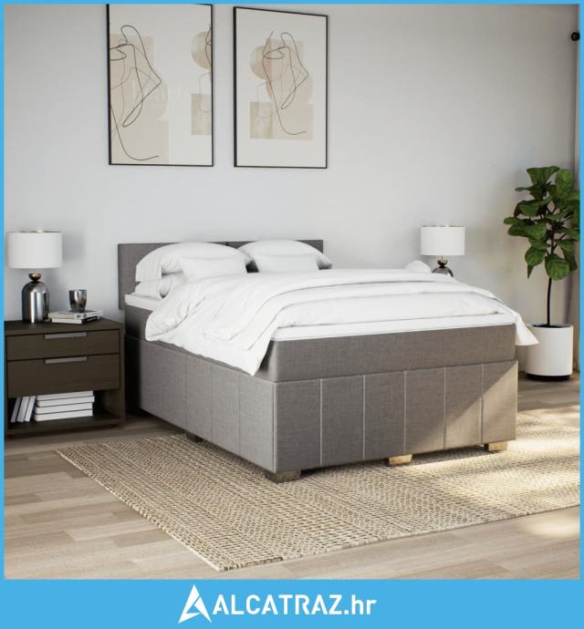 Krevet s oprugama i madracem smeđesivi 140x200 cm tkanina - NOVO