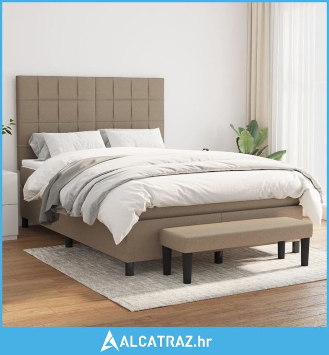 Krevet s oprugama i madracem smeđesivi 140x200 cm tkanina - NOVO