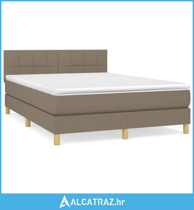 Krevet s oprugama i madracem smeđesivi 140x200 cm tkanina - NOVO