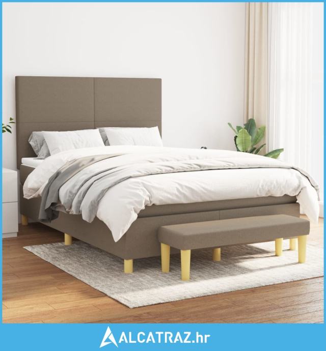 Krevet s oprugama i madracem smeđesivi 140x200 cm tkanina - NOVO