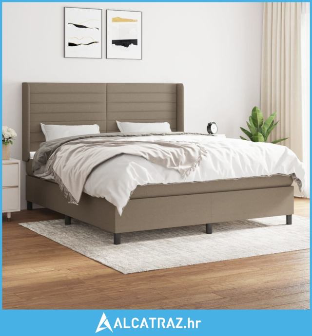 Krevet s oprugama i madracem smeđesivi 160x200 cm tkanina - NOVO