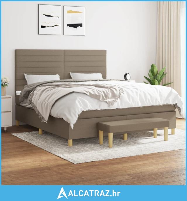 Krevet s oprugama i madracem smeđesivi 160x200 cm tkanina - NOVO