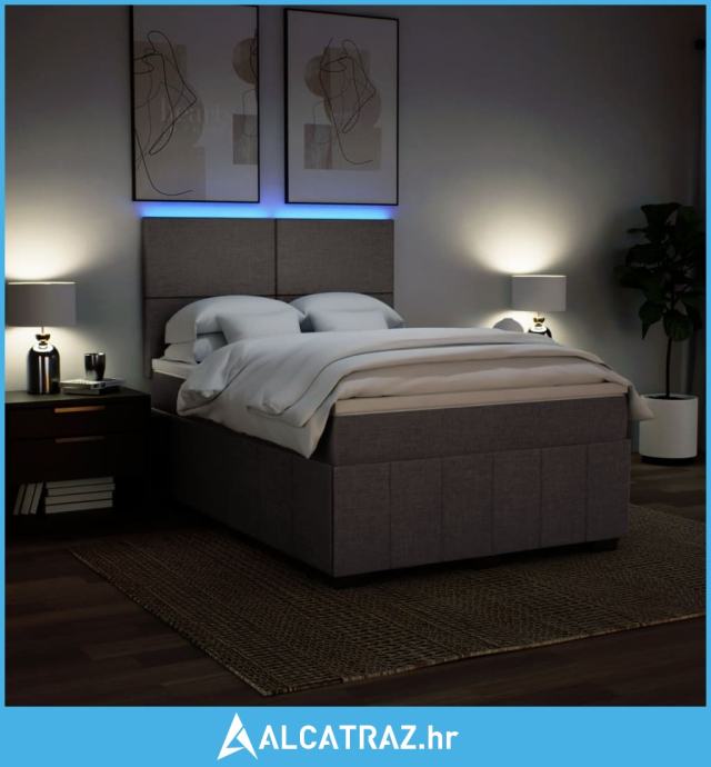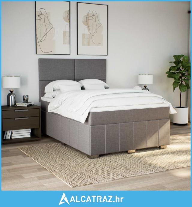 Krevet s oprugama i madracem smeđesivi 160x200 cm tkanina - NOVO