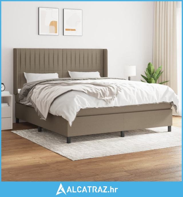 Krevet s oprugama i madracem smeđesivi 160x200 cm tkanina - NOVO