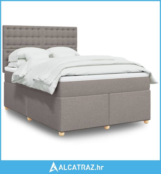 Krevet s oprugama i madracem smeđesivi 160x200 cm tkanina - NOVO