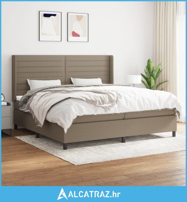 Krevet s oprugama i madracem smeđesivi 200x200 cm od tkanine - NOVO