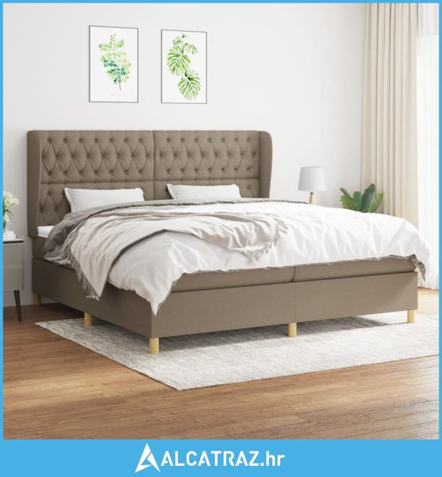 Krevet s oprugama i madracem smeđesivi 200x200 cm od tkanine - NOVO