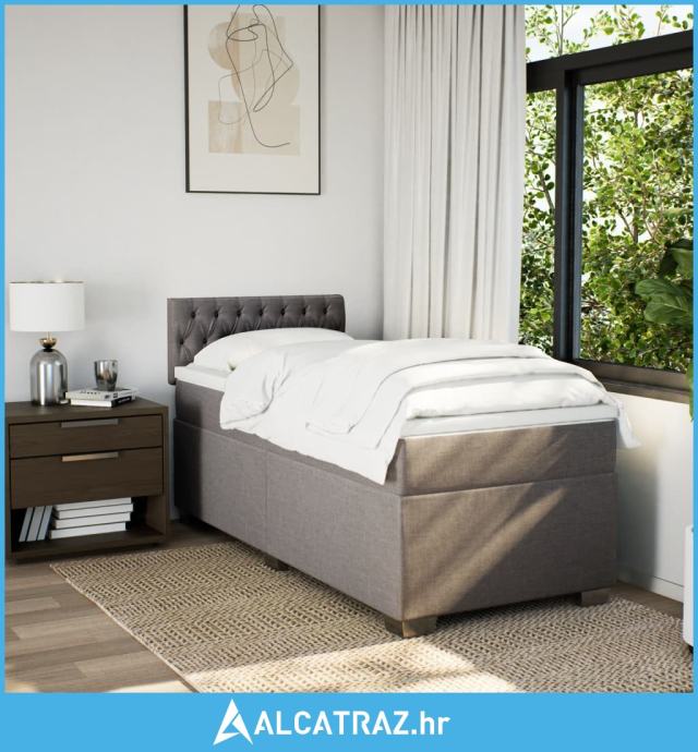 Krevet s oprugama i madracem smeđesivi 80x200 cm od tkanine - NOVO