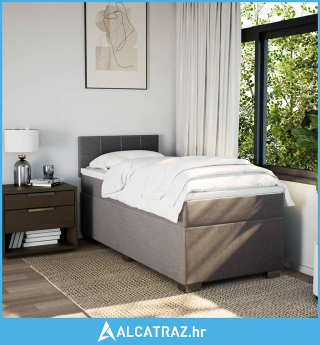 Krevet s oprugama i madracem smeđesivi 80x200 cm od tkanine - NOVO