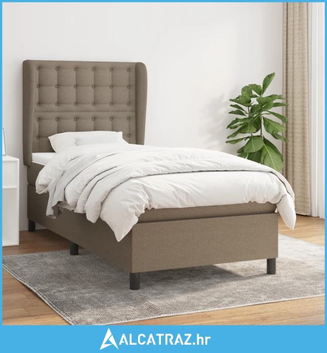 Krevet s oprugama i madracem smeđesivi 90x190 cm od tkanine - NOVO