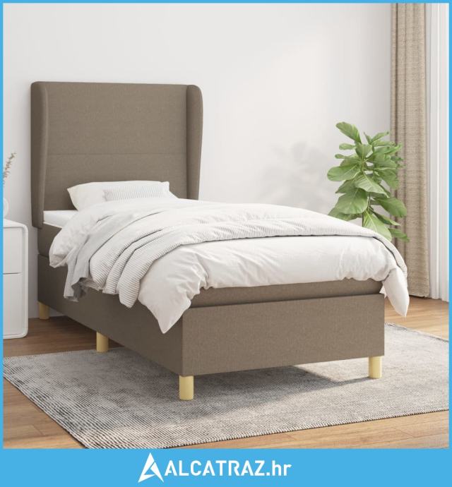 Krevet s oprugama i madracem smeđesivi 90x190 cm od tkanine - NOVO