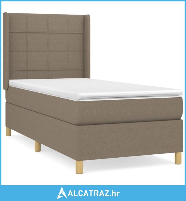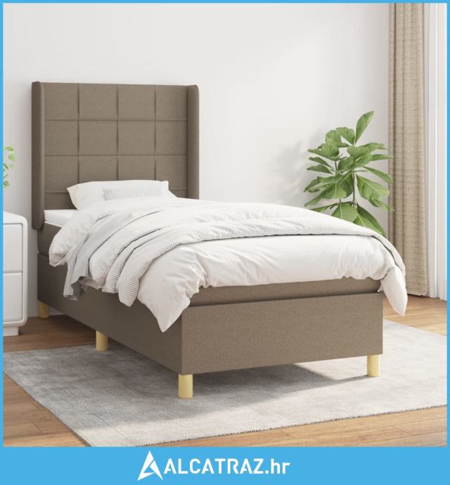 Krevet s oprugama i madracem smeđesivi 90x190 cm od tkanine - NOVO