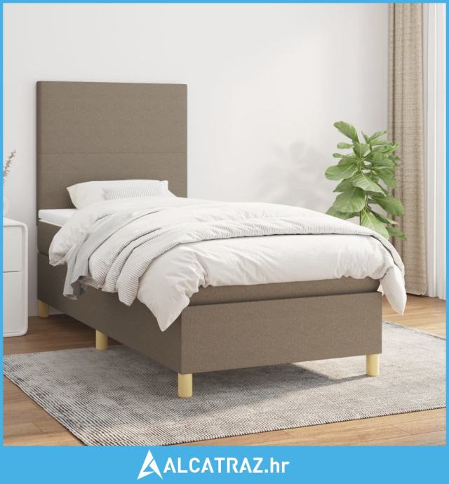 Krevet s oprugama i madracem smeđesivi 90x190 cm od tkanine - NOVO