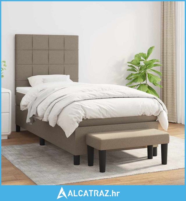 Krevet s oprugama i madracem smeđesivi 90x190 cm od tkanine - NOVO
