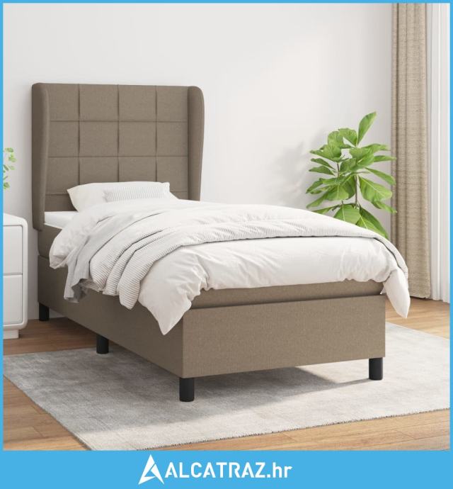 Krevet s oprugama i madracem smeđesivi 90x190 cm od tkanine - NOVO