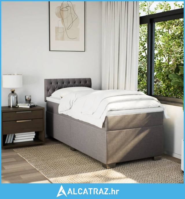 Krevet s oprugama i madracem smeđesivi 90x200 cm od tkanine - NOVO