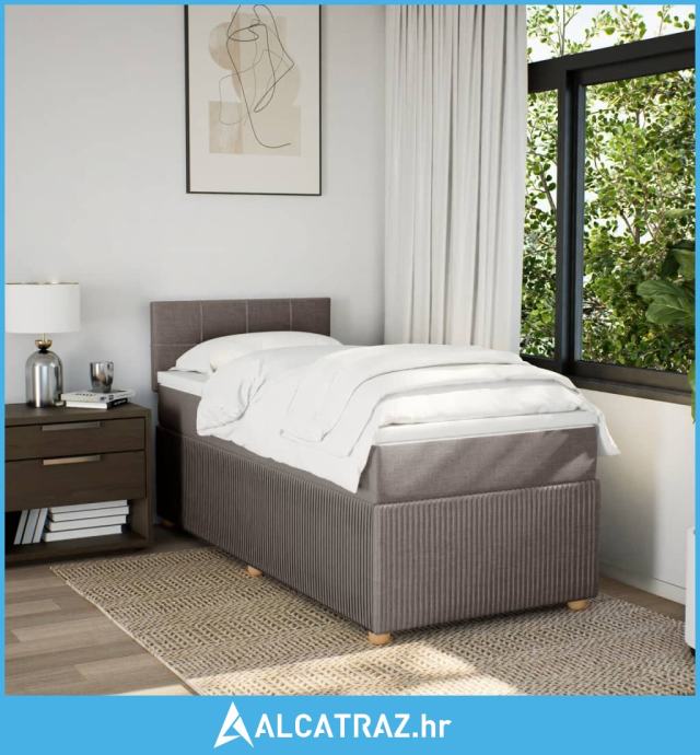 Krevet s oprugama i madracem smeđesivi 90x200 cm od tkanine - NOVO