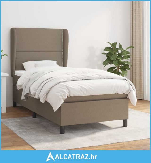 Krevet s oprugama i madracem smeđesivi 90x200 cm od tkanine - NOVO