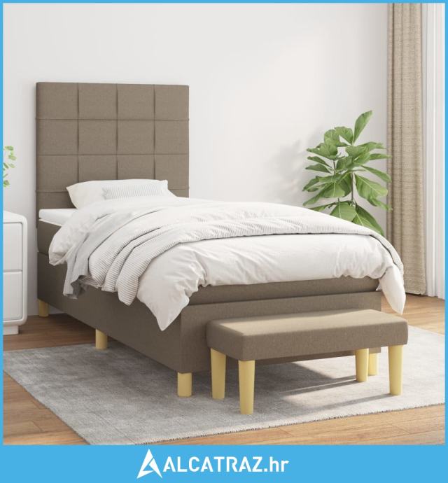 Krevet s oprugama i madracem smeđesivi 90x200 cm od tkanine - NOVO