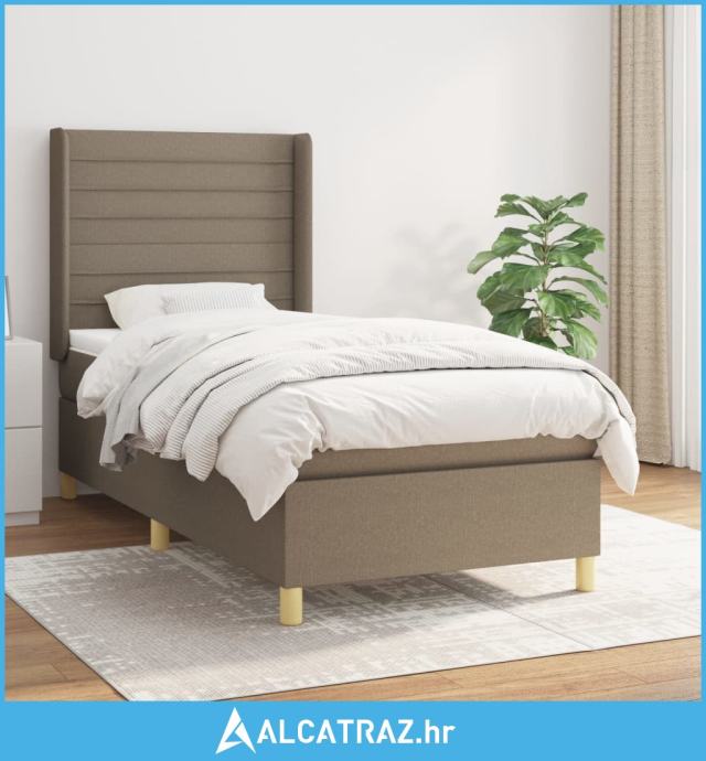 Krevet s oprugama i madracem smeđesivi 90x200 cm od tkanine - NOVO