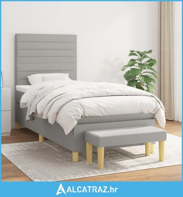 Krevet s oprugama i madracem svjetlosivi 100x200 cm od tkanine - NOVO