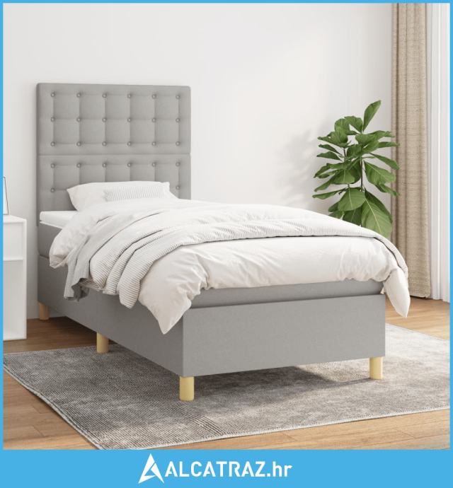 Krevet s oprugama i madracem svjetlosivi 100x200 cm od tkanine - NOVO