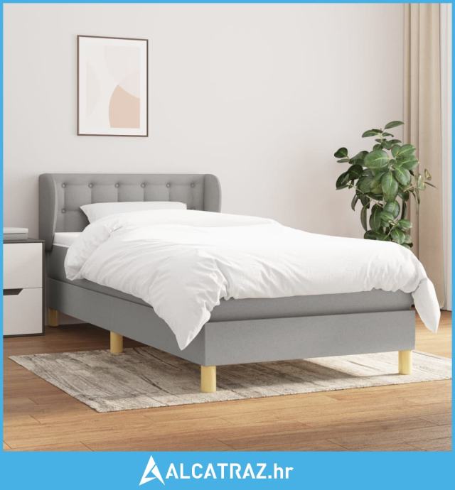 Krevet s oprugama i madracem svjetlosivi 100x200 cm od tkanine - NOVO