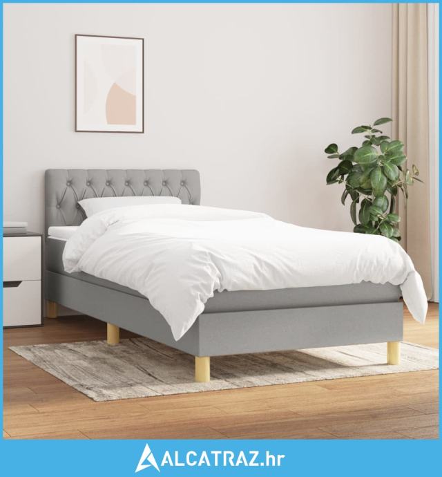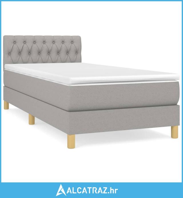 Krevet s oprugama i madracem svjetlosivi 100x200 cm od tkanine - NOVO
