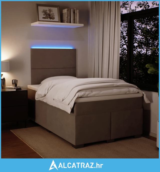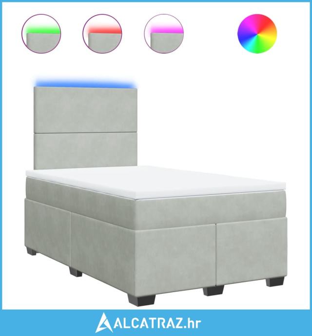 Krevet s oprugama i madracem svjetlosivi 120x190 cm baršunasti - NOVO