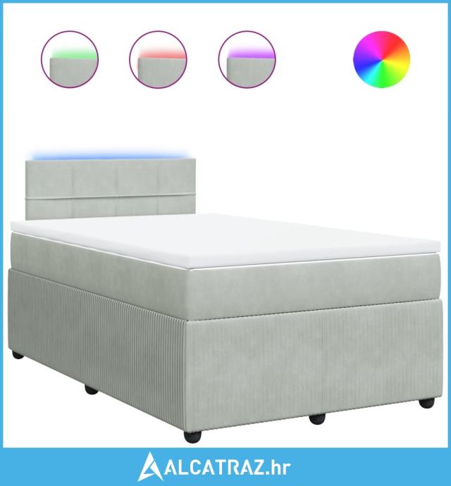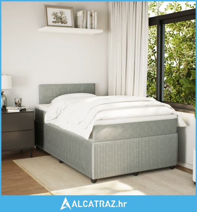 Krevet s oprugama i madracem svjetlosivi 120x190 cm baršunasti - NOVO