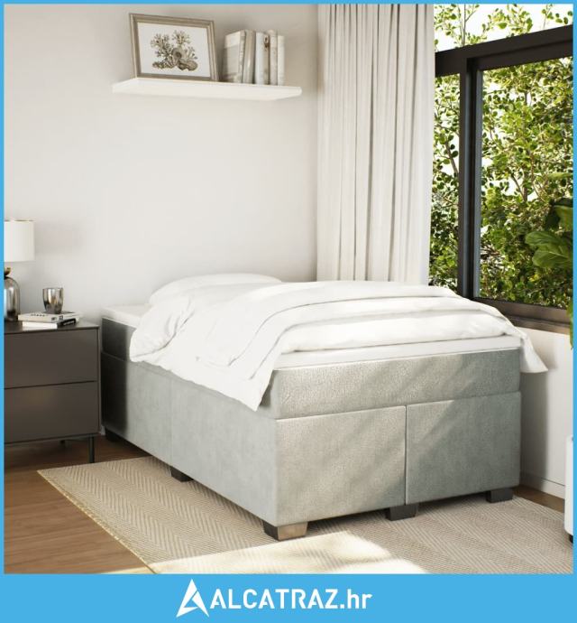 Krevet s oprugama i madracem svjetlosivi 120x190 cm baršunasti - NOVO
